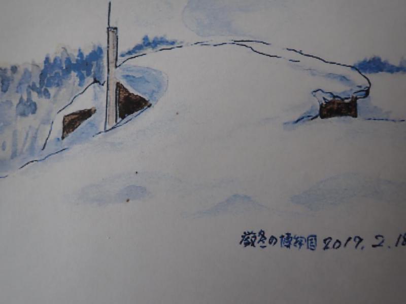 今日の積雪でセンタ−周辺も雪景色に似合う風景が見られるだろうか。雪の風景は四季の中でも特に幻想的である。これは19.年度独り山スキーで訪れた時のスケッチです。パウダーの肌触りは格別な思いがする。寝転んでも良し。