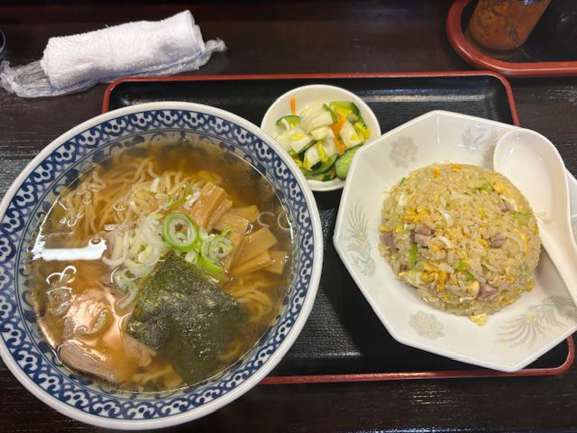 小龍姫(0238-43-5063)のラーメンセット。あ〜〜、もう食べちゃったよ。食べられちゃうのよ、私の腹は。小龍姫のチャーハン、大好きなのよ。
