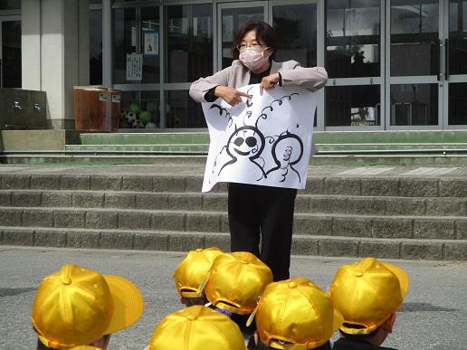 今日は交通教室。1・2年生は、学校の近くを左右確認のあと歩行、3年生は学校の周りを自転車通行、4〜6年生は、踏切を超えた十字路まで往復の自転車通行です。 とても上手に歩いて、ほめていただきました。 自分で考えて感想を言ったり、警察の方々にお礼を言うこともできました。自分の命は自分で守る・・・心に刻んで、ルールを守ってほしいと思います。