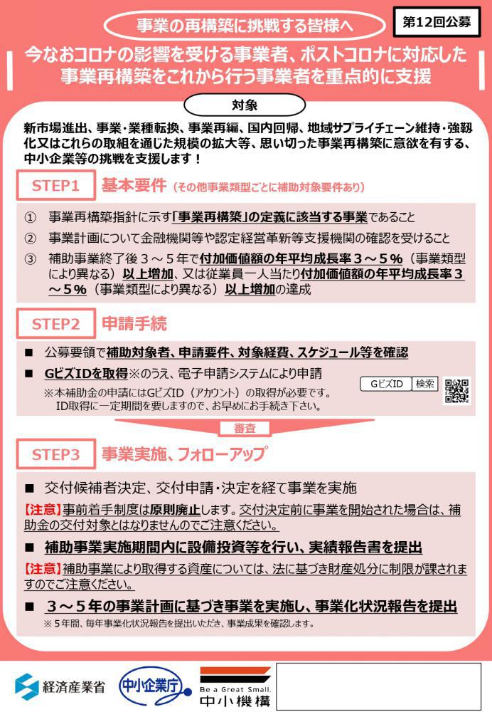 ●【補助金】事業再構築補助金第12回公募開始のお知らせ