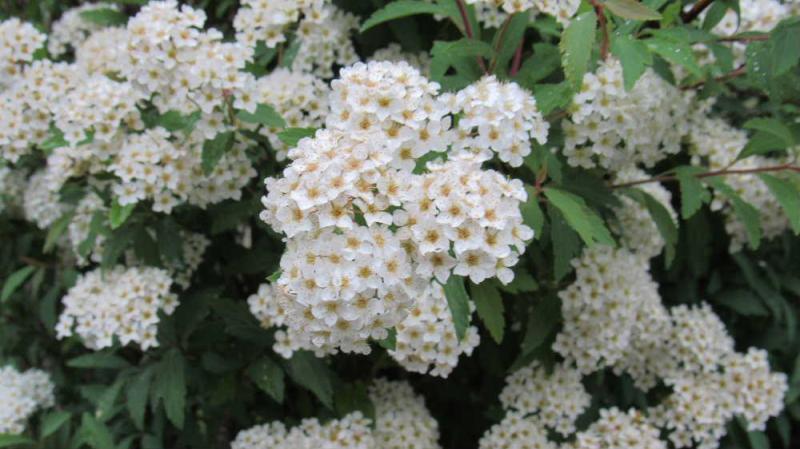 ●細い枝や葉が見えなくなるほど白い小さな花をたくさん咲かせる「コデマリ」でしょうか? 散歩の途中で見つけました 枝垂れる姿がとても見事で春から初夏を代表する花木だそうです