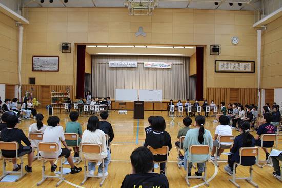 5月16日、4年生以上の一っ子が一堂に会し、児童会総会が行われました。総会では、今年度の児童会スローガンや各専門委員会の年間計画について熱心な話し合いが展開されました。特に、あいさつ運動に力を入れていくことが採択された後、事前に各学級で話し合ってきた「よりよいあいさつのためにできること」について、各学級委員が発表しました。 あいさつは望ましい人間関係を築くために、なくてはならないものです。これからますます、元気でさわやかなあいさつが響き渡る第一小になっていくことを期待しているところです。また、今回決まった様々な取組や活動が活発に行われ、さらに勢いのある学校が築かれていくことを楽しみにしています。