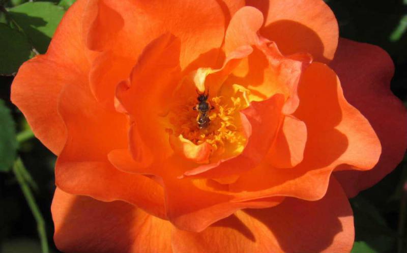 ●オレンジ色の庭の「バラ」の中央部にアリを見つけました 一生懸命口を動かしているので花の花粉を食べているのでしょうか でもアリは花を食べないそうです アリは甘いもの好きで砂糖やお菓子のクズに集まっているのをよく見かけます だとすると写真のアリは何をしているのでしょうか?