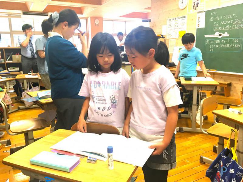 26日に校内授業研究会がありました。2年生の算数の授業を参観し研究を深めました。「はじめの数」を求めていく難しい内容でしたが、話し合ったり教え合ったりして解決していきました。その後、大学の先生による師範授業が、3年生で行われました。子供たちは大喜びです。ゲーム感覚で進める授業で、子供たちは目を輝かせながら、気づいたことを次々に発表していました。
