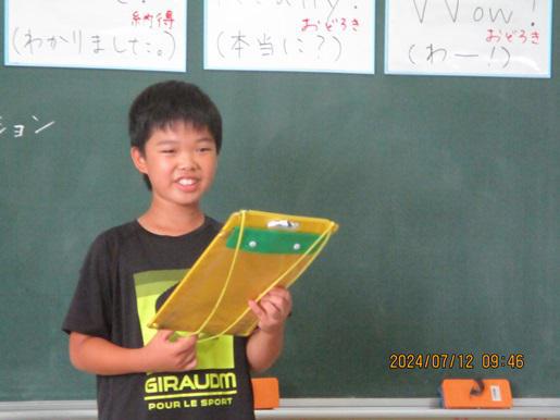 @ クイズにする先生に、"Can you play baseball?" など、「あなたは〜できます か?」という質問をいくつかしてきます。A 自分が先生になり切って、"I can ~.""I can't ~."のように話していきます。B 答えがわかった人は、挙手をして”Are you 〜?”と聞き、"That's right."(その通り!)、"No, I'm not."(いいえ違います)で答えていく。その様子です。 今年は、マイスター制度により、K教諭がすべての学年に英語を教えています。そうすることにより、K教諭の他に、担任、ALTと最高4人の指導者が教室にいることになります。この日は、K教諭と同じ立場の先生方も参観にいらしていました。 3つのヒントではなかなか推測できず、”Hint, please!"の声も。 授業後、指導主事の先生からは「本当に自然体で英語が使えている雰囲気がとてもいいですね。」と言っていただきました。 英語はもはや「道具」として、ICTと同じように使いこなすものです。使ってなんぼですね!これからがますます楽しみです。