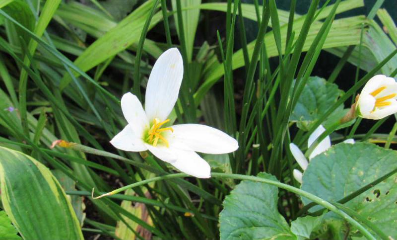 ●芸人が「アさて、さて、さてさてさてさて、さては南京玉すだれ」の威勢の良い掛け声とともに玉すだれを取り出し、「ちょいとひねれば、ちょいと、ひねれば・・・」とお正月などにでてくる「南京玉すだれ」という我が国の大道芸の一つがあります 竹製の小さなすだれを使った大道芸です この写真は「タマスダレ」という植物で白い花を玉に見立て葉が集まっている様子をすだれに例えて「タマスダレ」と名前がついたと言われています とても可愛い花です