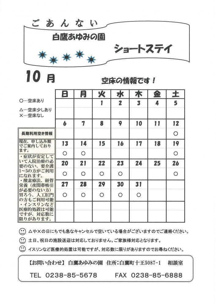 ●10月の短期入所空き情報