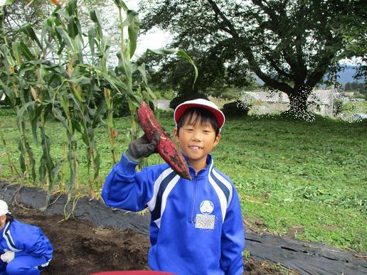 あったあった! うれし〜!! 何して食べよっかな〜!今日は、1.2年生のさつまいも掘りの日。 2年生は次々にさつまいもを収穫! ここだここだ! 楽しいね〜! ↓ ↓ ところが、先に堀った1年生・・・ あら、掘り終わった?いもは? ・・・・・・「ない。だから、クリスマス用のリース作ってる・・・」なんだって!? あったのは、10pくらいの細い1本だけ・・・。 ああ無常・・・! みんな、静か~に、リースづくりを黙々と・・・。 は〜、シビアですね〜、自然は・・・。 よし、クリスマスパーティーは、たくさん飾って、盛大に!だね! 人生、いろいろ! それにしても、1年生をこんなに打ちのめさなくても…。 収穫の??・・・。 熊バスの期間を終え、元気に歩いてくる顔、 サルビアの蜜を吸った、あま〜い顔で、気を取り直しましょう!
