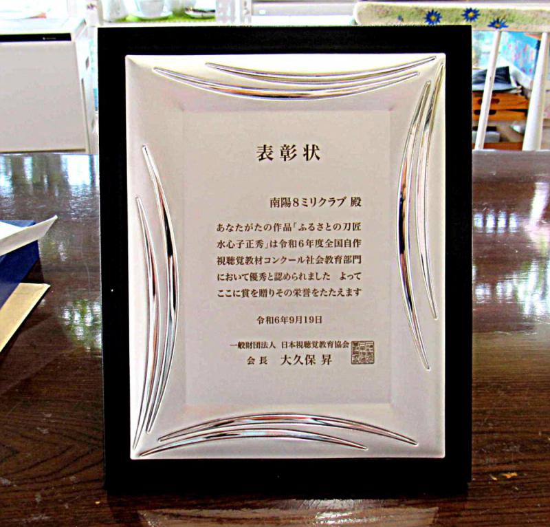 ●全国コンクール優秀賞 南陽8ミリクラブ令和5年度自作視聴覚教材「ふるさとの刀匠 水心子正秀」が令和6年度全国自作視聴覚教材コンクールで優秀賞を受賞しました またもや悲願の一等賞 最優秀賞である文部科学大臣賞に届かず涙をのみました 悲願47年これまで何度もあと一歩まで進みましたが今年も一等賞を逃してしまいました この作品ならいけるのではと自信をもって出品した作品で悔しさも大きい また新作でゼロからチャレンジです 力が萎えてしまいそう