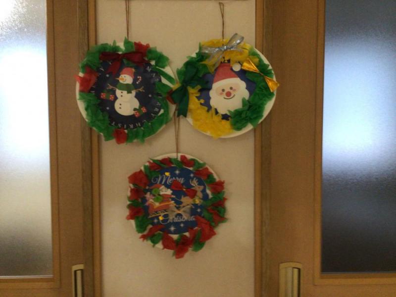12月に入り、クリスマスに向けて入所のご利用者様が、自分で素材を選んでオリジナルのクリスマスリースを作りました。皆さんそれぞれの個性が出ているリースに仕上がっています。完成したリースは居室の入り口に飾ってクリスマスの雰囲気を盛り上げています。