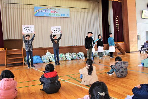 2月14日(金)、ふれあいの里・菅原様、トヨタカローラ長井店・本間様にご来校いただき、今年度の「福祉用品贈呈式・ペットボトルキャップ引渡し式」を行いました。 1年間継続して取り組んできた活動が、たくさんの方の笑顔に繋がることを全体で確認し、今年度の成果をみんなで喜び合いました。 アルミ缶回収については、収益金 28,234円で車椅子を購入し、白鷹介護サービスセンター「ふれあいの里」さんに寄贈しました。この車椅子が、施設を利用する方々の助けとなり、少しでも快適に過ごしていただけるよう願いを込めてお渡ししました。 ペットボトルキャップ回収については、143.5kg(およそ6万個)をトヨタカローラ長井店さんにお渡ししました。この量で、約80人の子供たちの命を救うワクチンに換えることができます。 この取組を通して、私たちの「ちょっとした行動」が誰かの役に立つことを改めて実感しました。これからも、顔の見えない誰かのためであっても、自分にできることを考え、行動できる力を大切に育んでいきたいと思います。