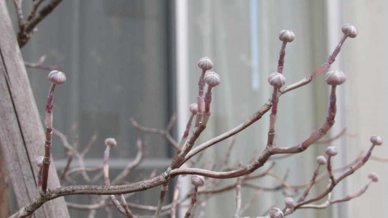 ●春を探しに「ハナミズキの花芽」 朝からやわらかな日差しが注ぎ暖かな一日になりそうです いよいよ待ちに待っていた春がやってきました 花木の花芽もふくらんできました 庭の「ハナミズキ」の花芽がふっくらとしてきました 咲くのはまだまだ先でしょうが暖かな日が続き いろいろな花々がまもなく咲き始めるのでしょうか