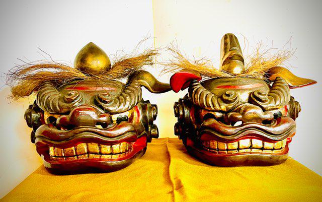 コレクションの豪華な黄金の獅子頭と同じ様式と思われる獅子頭一対が入荷した。
