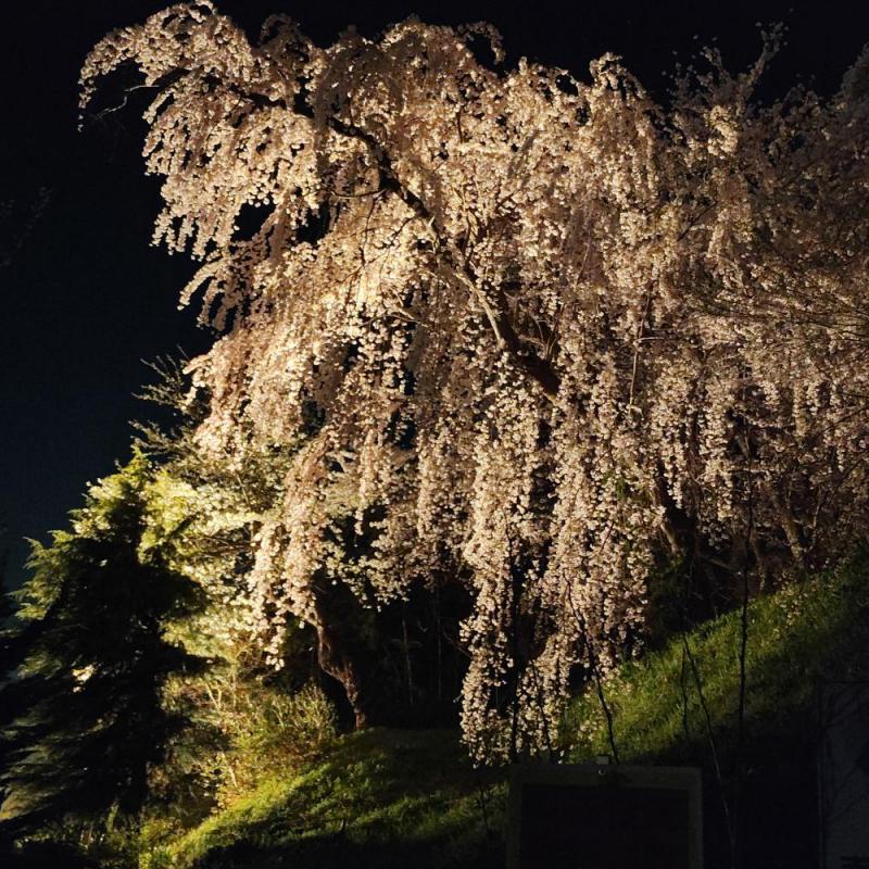 満開の烏帽子山のライトアップされた夜桜は、昼の儚さとはまた違った幻想的な美しさを見せてくれます。ライトアップされた一面の桜が夜空に映えて、美しさに酔いしれました…夜の桜もオススメです!!