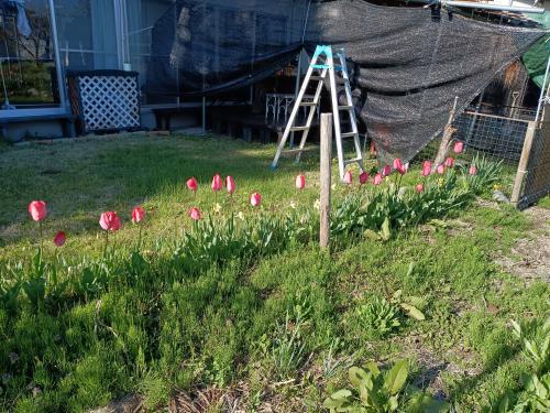 先月21日から28日まで東京に行っておりました・・行くとき4月21日は、まだつぼみだった我が家のチューリップですが、帰宅した29日早朝にはみな咲いておりました・・昨年、福島の山友でありスキー友”S”さんからいただいた球根を植えたもの・・色はみんな赤だったんですね・・スイセンと並んで植えており、スイセンが終わりチューリップとなりました・・球根まだたくさん残っております・・