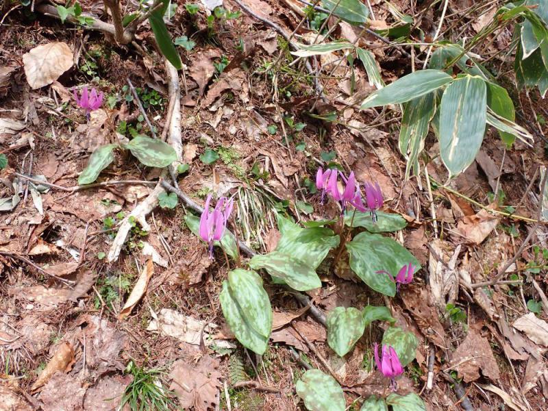 志津、弓張平公園周辺でのカタクリの生息は観察出来ますが月山道地蔵鵜沼月山道辺りまで観察出来ます。毎年5〜6本確認で来るようになりました。ここから上は有りません。