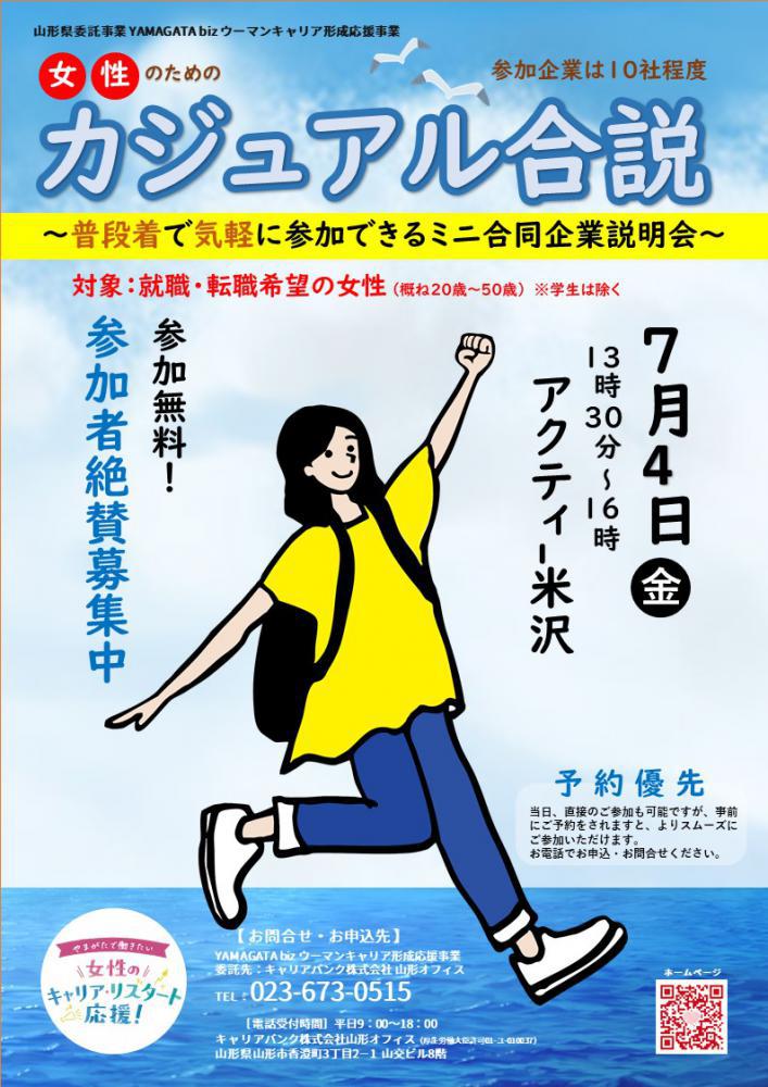●【米沢】7/4(金)カジュアル合説「普段着で気軽に参加できるミニ合同企業説明会」【開催終了】