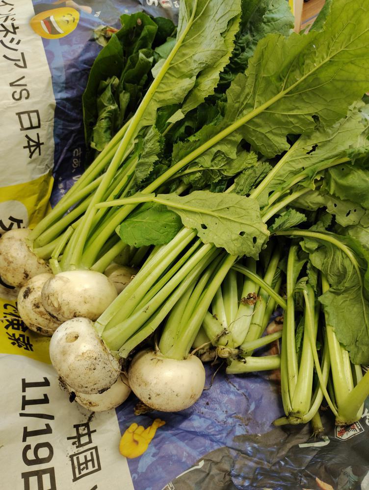公民館のお隣さんから、採れたてのカブと小松菜をたくさん頂戴しました\(^o^)/いつもありがとうございます!!