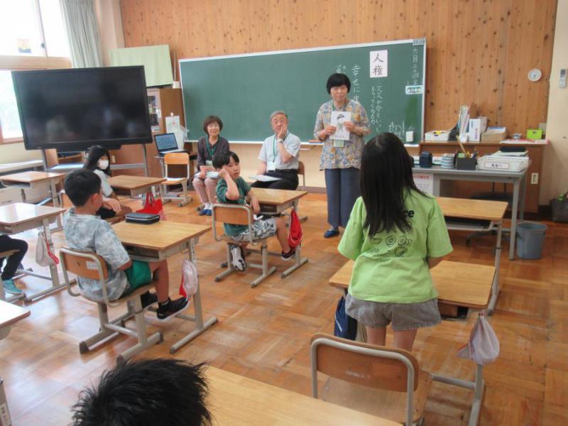 長井市の人権擁護委員3名と担当の職員の方においでいただき、3年生の人権教室が行われました。「人権」についての学習と聞くと難しそうに感じますが、とても分かりやすく教えていただき、「人権」について考える貴重な時間となりました。「人権とは?」というお話をお聞きした後、DVD「勇気のお守り」を視聴しました。そして、登場人物の言動を振り返りながら、3年生の皆さんは話し合いを進める中で大切なことに気づくことができたようです。人権擁護委員の皆さんからは、3年生の学習態度をたくさんほめていただきました。真剣に考え、しっかり伝えようとする大切な力が育っている3年生の皆さんです。SOSミニレターというものもあることを知りました。最後に啓発えんぴつをいただきましたが、そこに描かれているキャラクターは、あの有名なキャラクターと同じ作家さんとのこと。今、朝のドラマにもなっている…?。まずは、貴重な時間となりました。人権擁護委員の皆様、ありがとうございました。