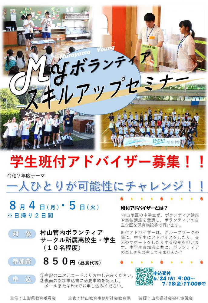 ●「8/4〜5開催 村山地区 MYボランティアスキルアップセミナー(高校生・学生用)」のご案内