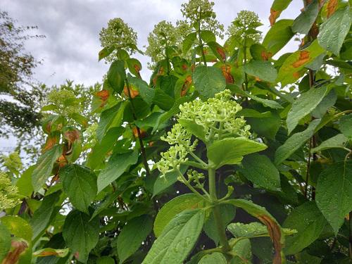 あの異常な暑い日が続いて、人も植物もからから、恵みの雨で潤いが戻って来ました。ここ長井もほかの地域に負けじと今朝の6時の情報では24時間の降水量が62.5ミリ! 朝はまだ雨、藪状態のグリーンガーデンになった!なんて会話をしながらリビングからの庭の風景を眺めながらの朝食。外に出て見ると雨も止んで、爽やかな風、気持ちがいい〜雨の後の庭仕事もやる気スイッチ入ったのですが…午前中は、庭をグル〜と。写真を撮るだけで終わってしまいました…じーじは、久しぶりの散歩へ。 午後は、蒸し暑くなりましたが。思い切って庭仕事。藪状態のところを、せっせと刈込・・・もう汗でびっしょり、無理しないで今日の仕事はおしまいにしました。熱中症に注意デス。  (トップ写真)は・・・今の時期、我が家での代表選手の”ピラミットアジサイ”水不足で葉も枯れ始めてしまいましたが、恵みの雨で何とか持ちこたえ花も咲き始めました。(赤いところは枯れた部分)よかった! ↓こちらも、秋の花の代表選手〜”青色フジバカマ"根っこで増殖、増え過ぎ注意です。”白色フジバカマ”は、これからです。白は中々増えないので貴重です。  7/31に登場した”ヘレニウム"もう満開状態〜夏らしい♪  毎年、お馴染み”リグラリア”  ↓”フロックス” 白花はいいですね。いい所撮りですが、他の色と長く咲いてくれています。   ”アリウム・ミレニアム”  ↓”ルドベキアタカオ”増え方が半端でないですが夏の庭を元気にしてくれています。雨で倒れて凄い状態でしたが朝のうちにじーじがメンテしてくれました。  ここは何とか維持していますが・・・  ここからが藪状態に・・・それぞれの花が、競って咲いてくれたので、雨で通路がわかりません。       早い時期に切り戻し終わった花は、もう根元には新しい葉が出始めています。  他の花も、早く切り戻ししてスッキリした庭にしたいです。天気次第ですね(^^) 暦では、もう立秋、日も短くなってきました。今日は長くなってしまいました。遅いので、あした(8/8)の更新です。