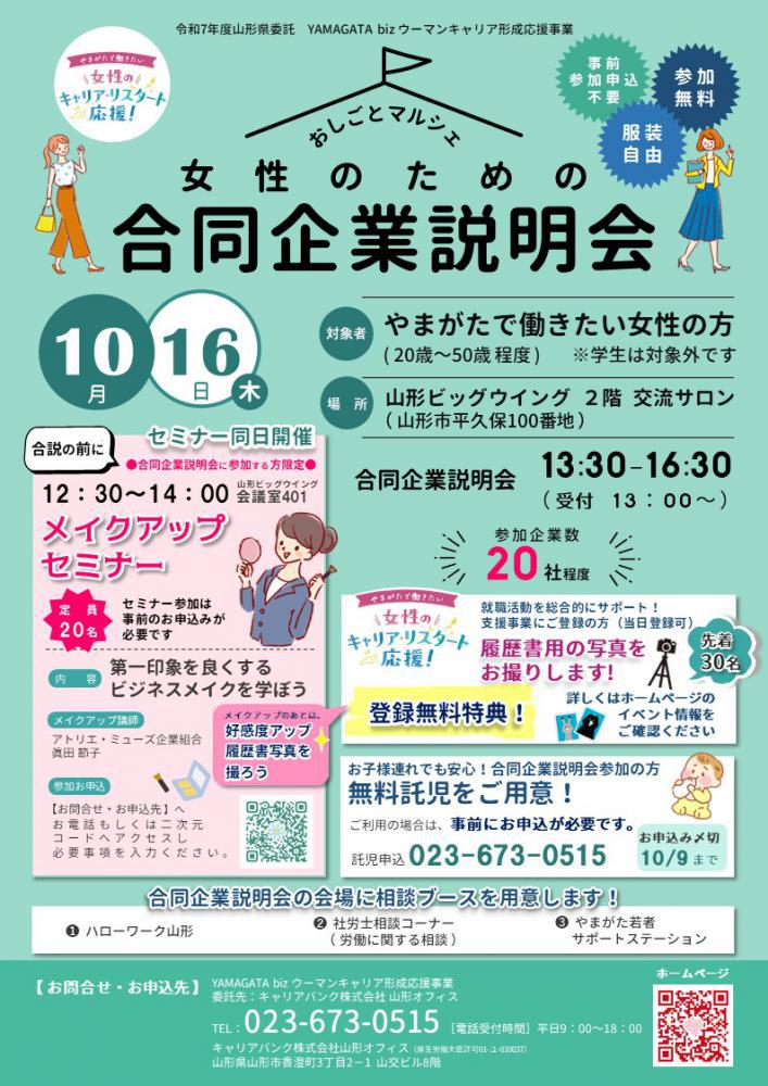 ●10月16日(木)おしごとマルシェ「女性のための合同企業説明会」を開催します【開催終了】