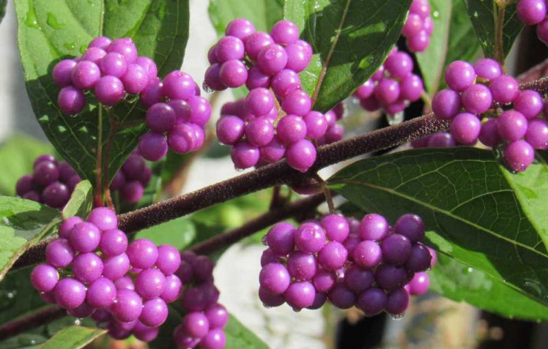 ●鮮やかな紫色の「コムラサキ」が我が家に秋を運んでくれるように色づいてきました「コムラサキシキブ」かなと思っていましたが正しくは「コムラサキ」という花木のようです 実がびっしりと密集して付き細長く枝がのび垂れ下がるように実がなっています カメラで鮮やかな紫色を写し撮るのが難しいのですが「コムラサキ」の実の美しさを感じとってもらえたでしょうか