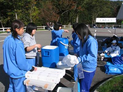 選手のみなさんが走った後に飲むスポーツドリンクを準備して(試飲したらすごく甘かったです・・・みんなの好み???)